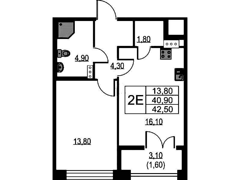 • Площадь42,5 м2
