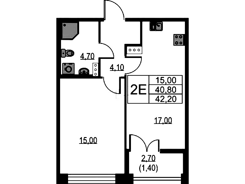 - Площадь42,2 м2