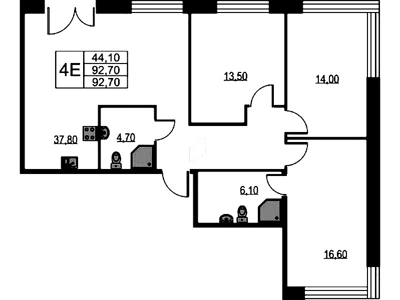 • Площадь92,7 м2