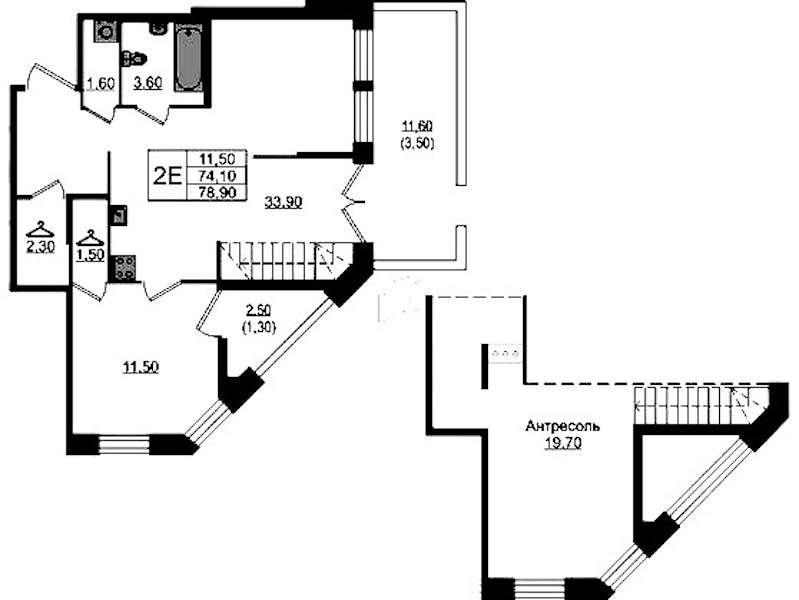 Однокомнатная квартира на 1-ом этаже 78,9 кв.м