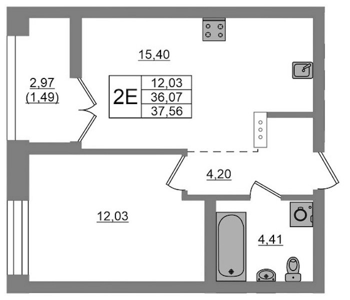 - Площадь37,56 м2