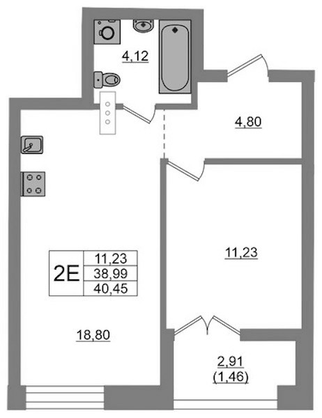 - Площадь40,45 м2