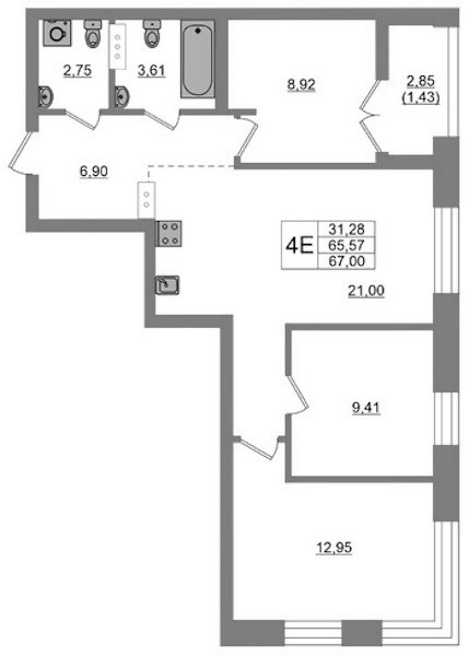 - Площадь67 м2