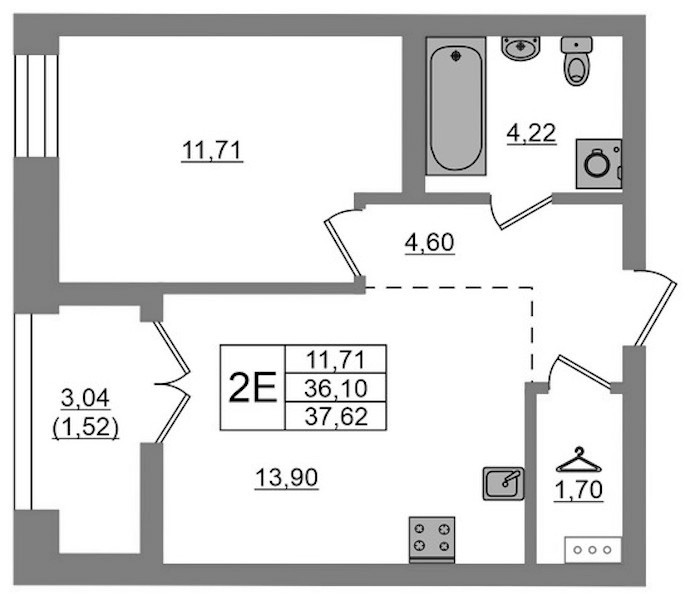 • Площадь37,62 м2