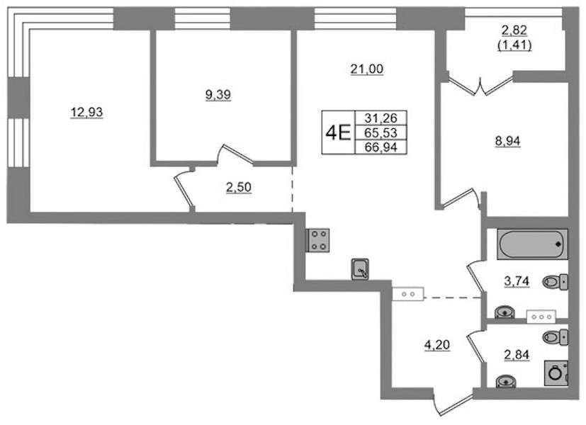 - Площадь66,94 м2