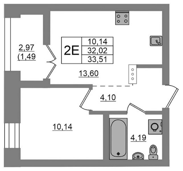 - Площадь33,51 м2