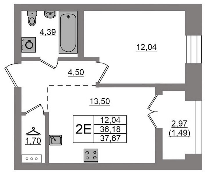Однокомнатная квартира на 9-ом этаже 37,67 кв.м
