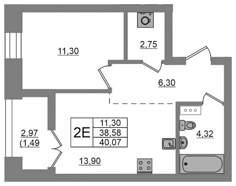 • Площадь40,07 м2