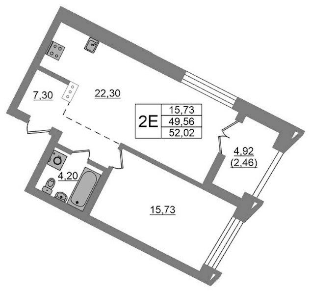 Однокомнатная квартира на 9-ом этаже 52,02 кв.м