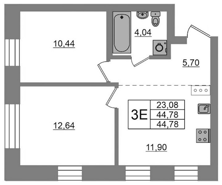 • Площадь44,78 м2