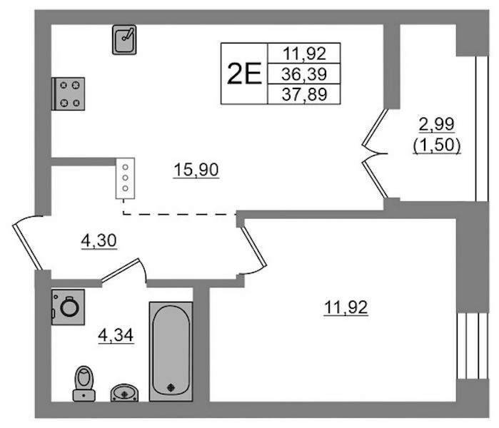 Однокомнатная квартира на 6-ом этаже 37,89 кв.м