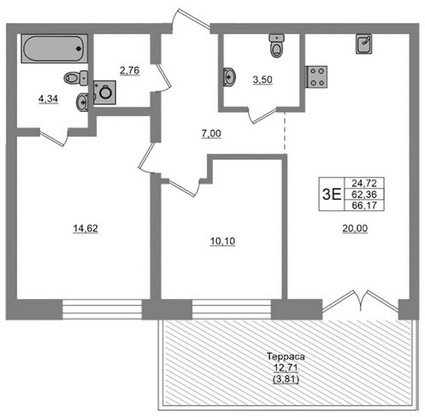 - Площадь66,17 м2