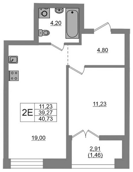 - Площадь40,73 м2