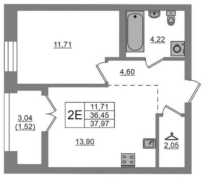 • Площадь37,97 м2