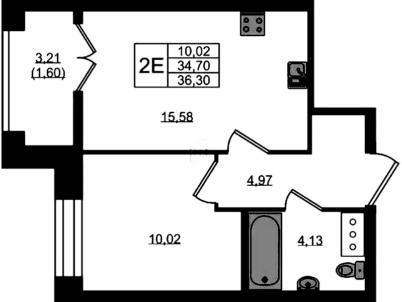 - Площадь36,3 м2