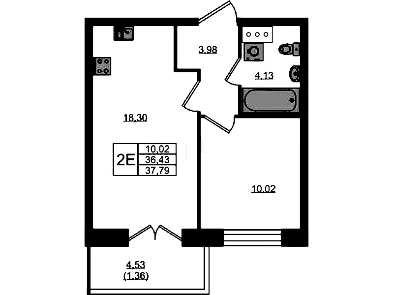 Однокомнатная квартира на 3-ем этаже 37,79 кв.м
