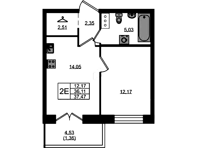 Однокомнатная квартира на 7-ом этаже 37,47 кв.м