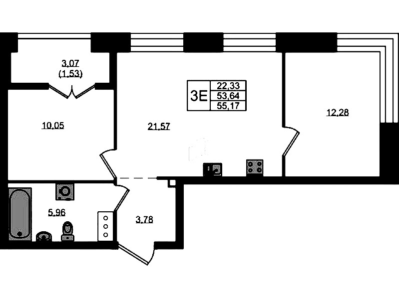 - Площадь57,17 м2