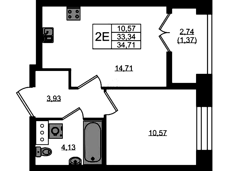 Однокомнатная квартира на 7-ом этаже 34,71 кв.м