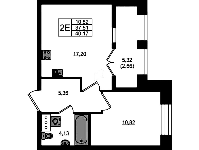 Однокомнатная квартира на 5-ом этаже 40,17 кв.м