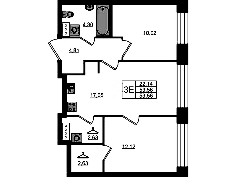 • Площадь53,56 м2