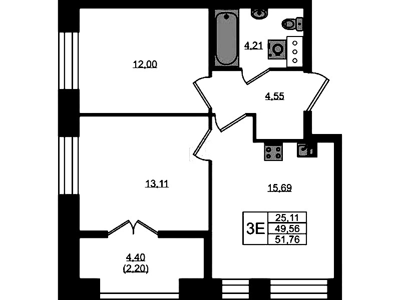 - Площадь51,76 м2