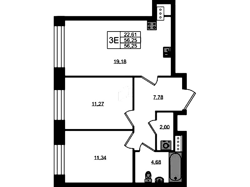 • Площадь56,25 м2