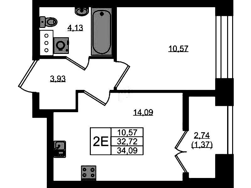 - Площадь34,09 м2