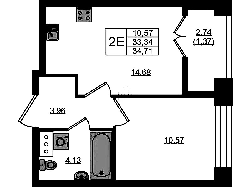 - Площадь34,71 м2