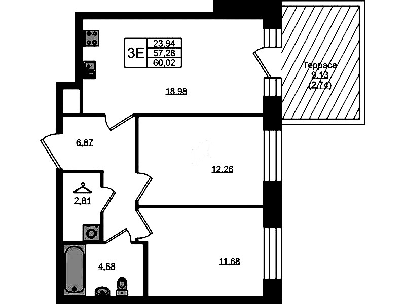 Двухкомнатная квартира на 2-ом этаже 60,2 кв.м