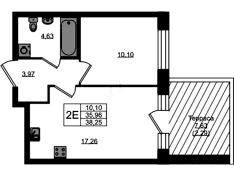 • Площадь38,25 м2