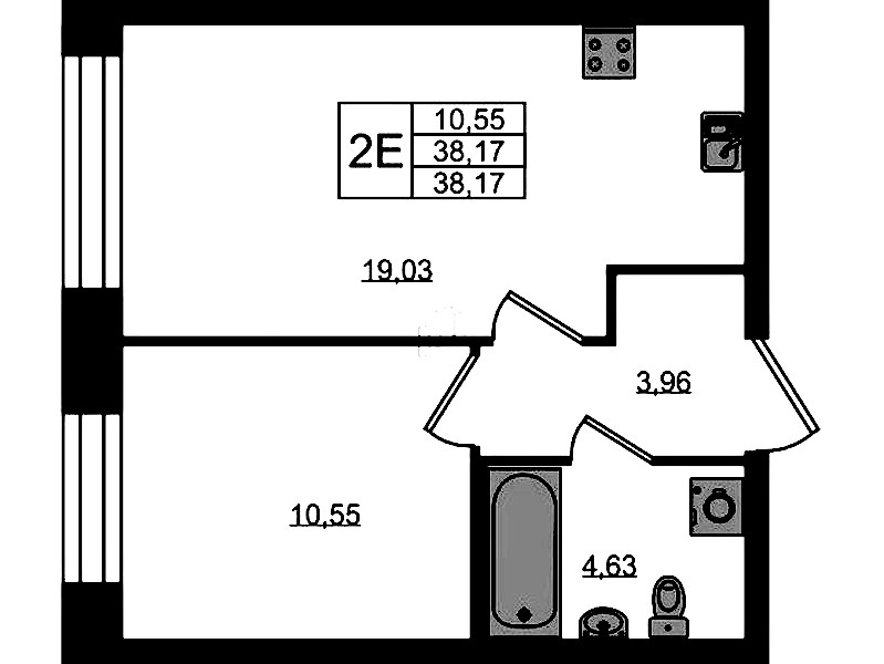 Однокомнатная квартира на 2-ом этаже 38,17 кв.м