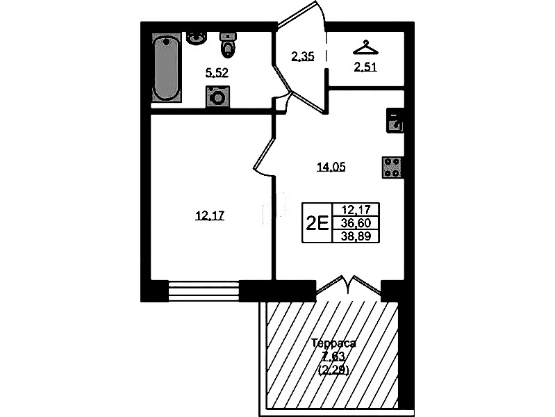 - Площадь38,89 м2