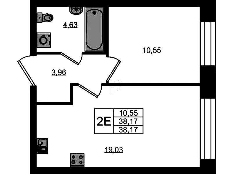 Однокомнатная квартира на 2-ом этаже 38,17 кв.м