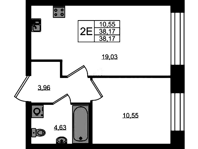Однокомнатная квартира на 2-ом этаже 38,17 кв.м