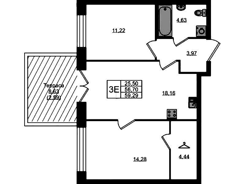• Площадь59,29 м2