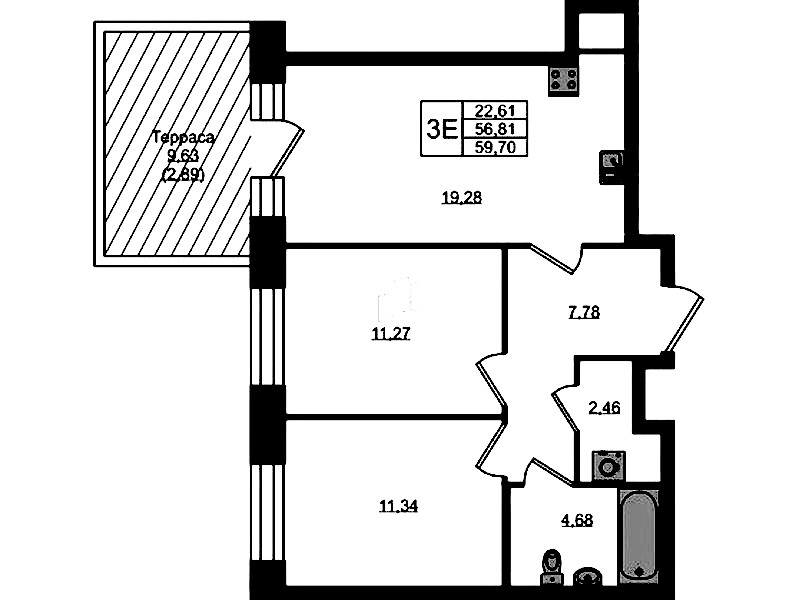 - Площадь59,7 м2