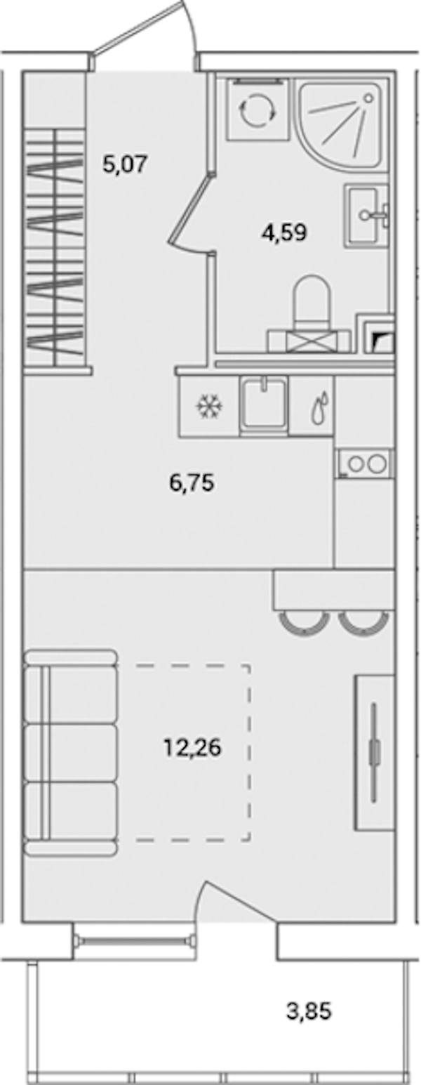 Квартира-студия на 2-ом этаже 29,83 кв.м