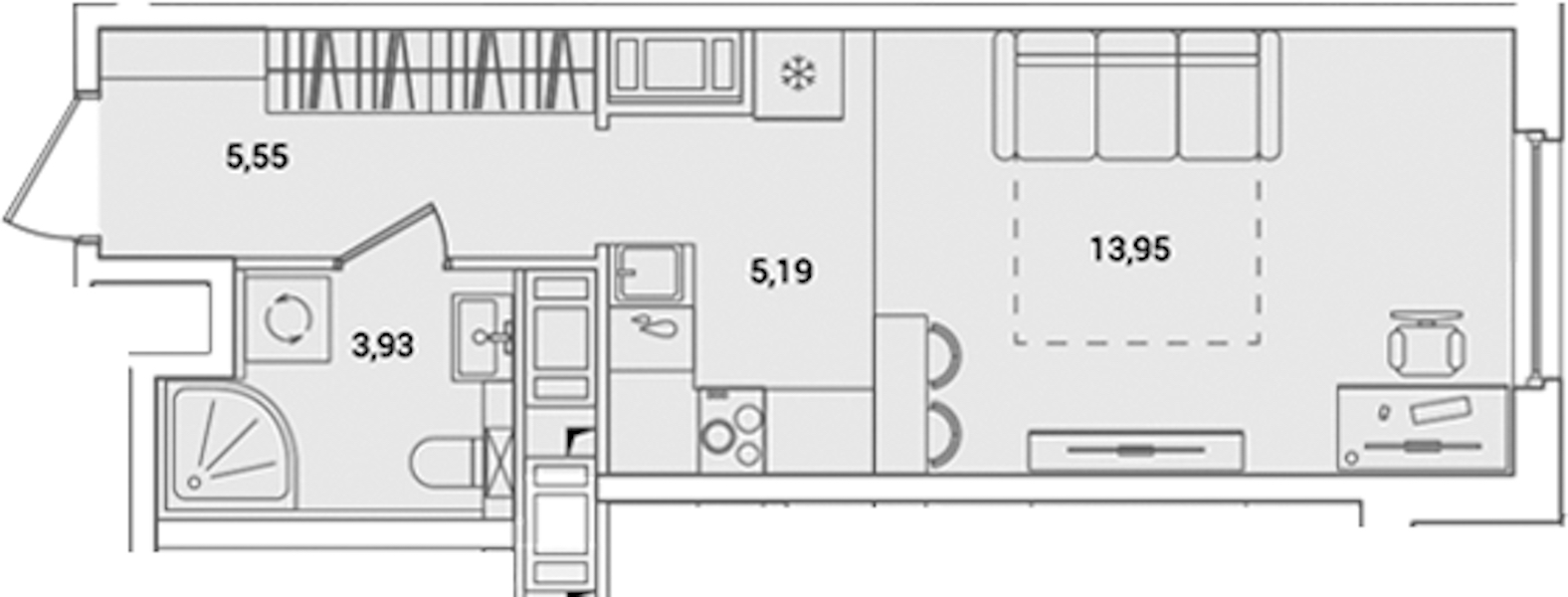 Квартира-студия на 12-ом этаже 28,62 кв.м
