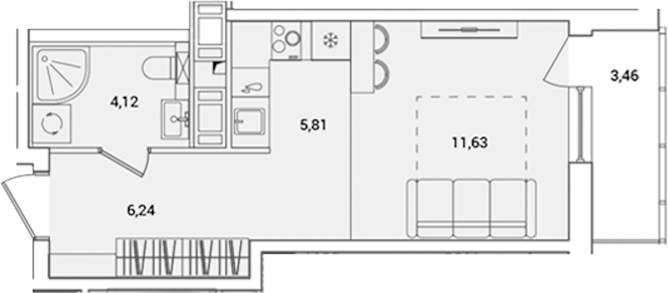 Квартира-студия на 13-ом этаже 29,53 кв.м