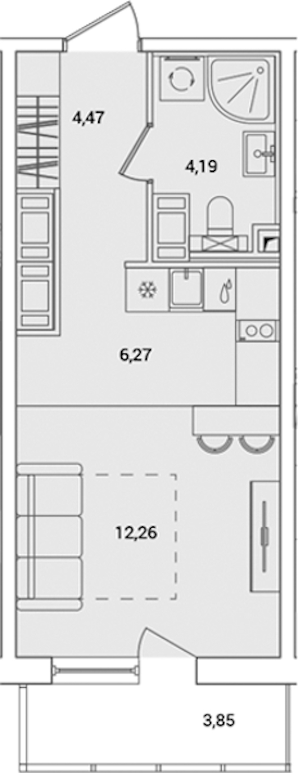 Квартира-студия на 18-ом этаже 28,35 кв.м