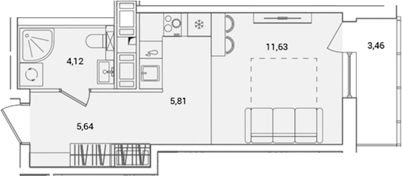Квартира-студия на 25-ом этаже 28,93 кв.м