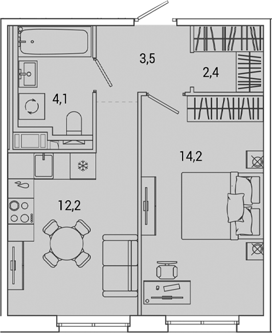 • Площадь кухни12,2 м2
