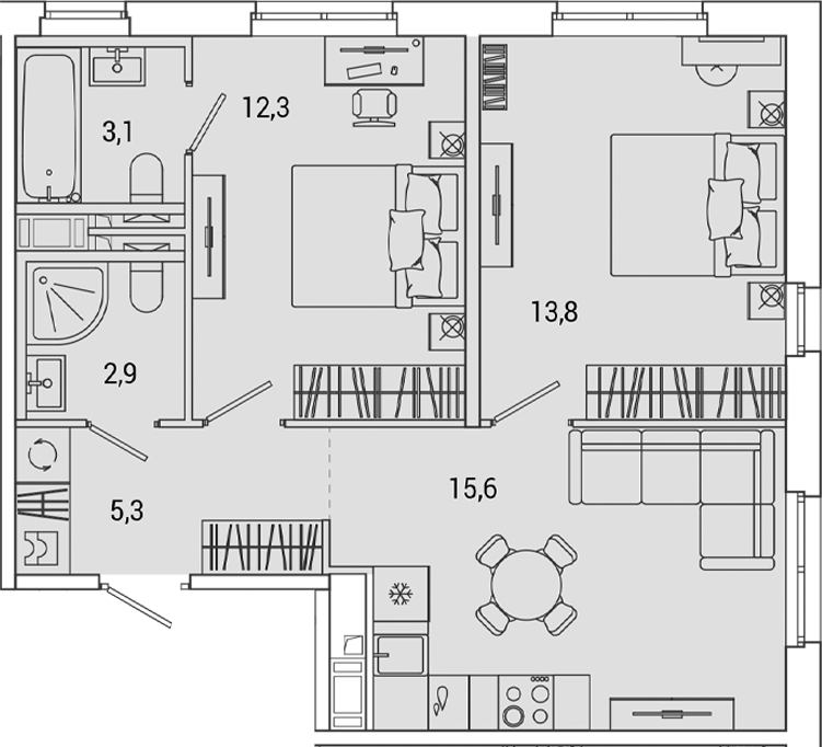 • Площадь кухни15,6 м2