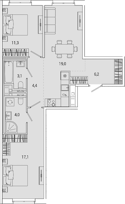• Площадь кухни19 м2