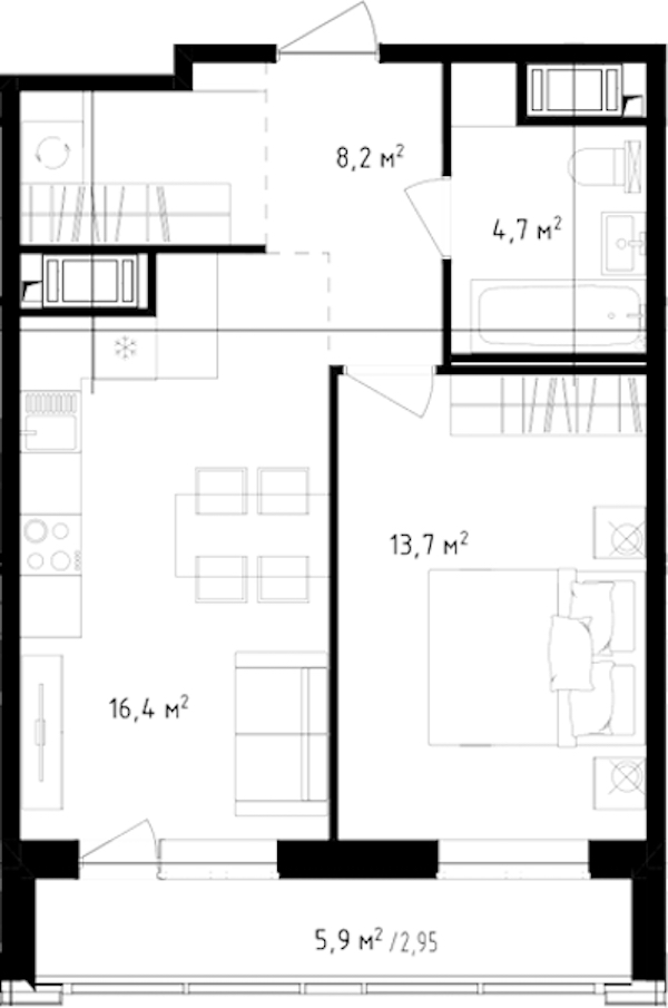 - Площадь45,95 м2