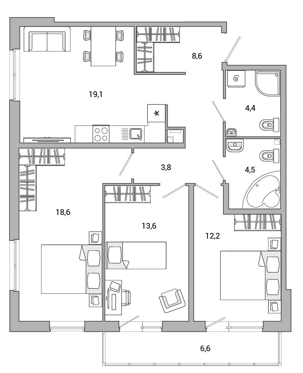 Выше представлены не все варианты квартир, а только часть популярных планировок. Введите данные и получите под ваш запрос планировки, цены, виды из окон и полную информацию по всем подходящим вариантам. 1/5