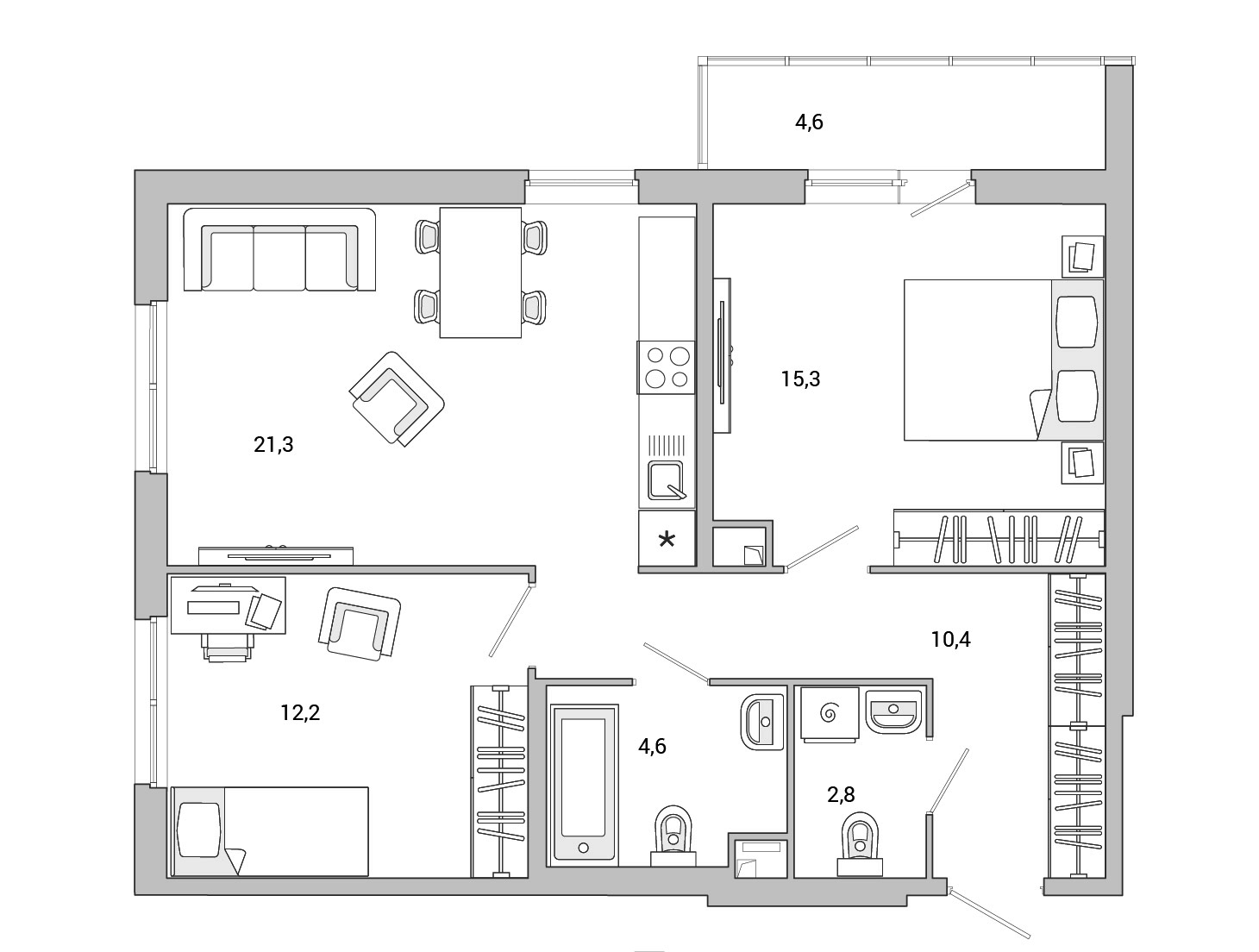 Выше представлены не все варианты квартир, а только часть популярных планировок. Введите данные и получите под ваш запрос планировки, цены, виды из окон и полную информацию по всем подходящим вариантам. 1/5