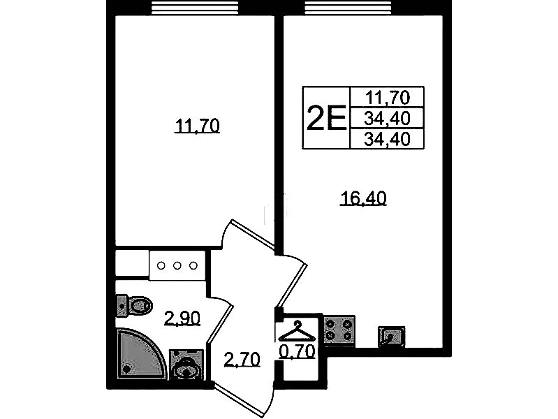 - Площадь34,4 м2