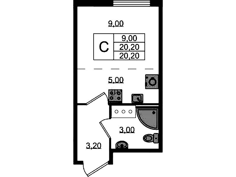 Квартира-студия на 15-ом этаже 20,2 кв.м